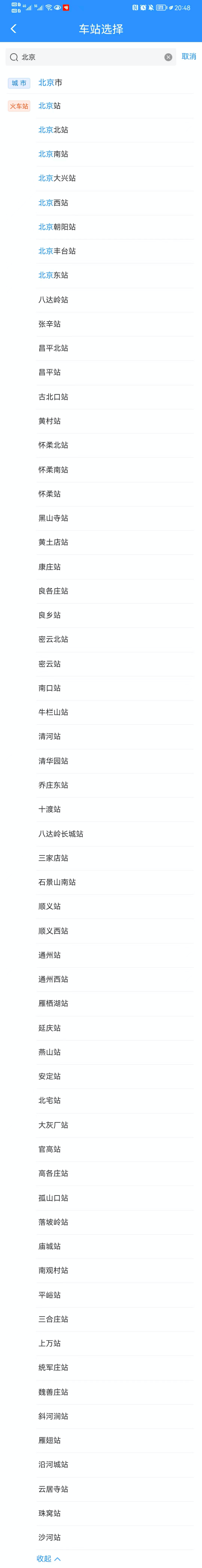 標(biāo)簽下顯示北京市內(nèi)所有火車站