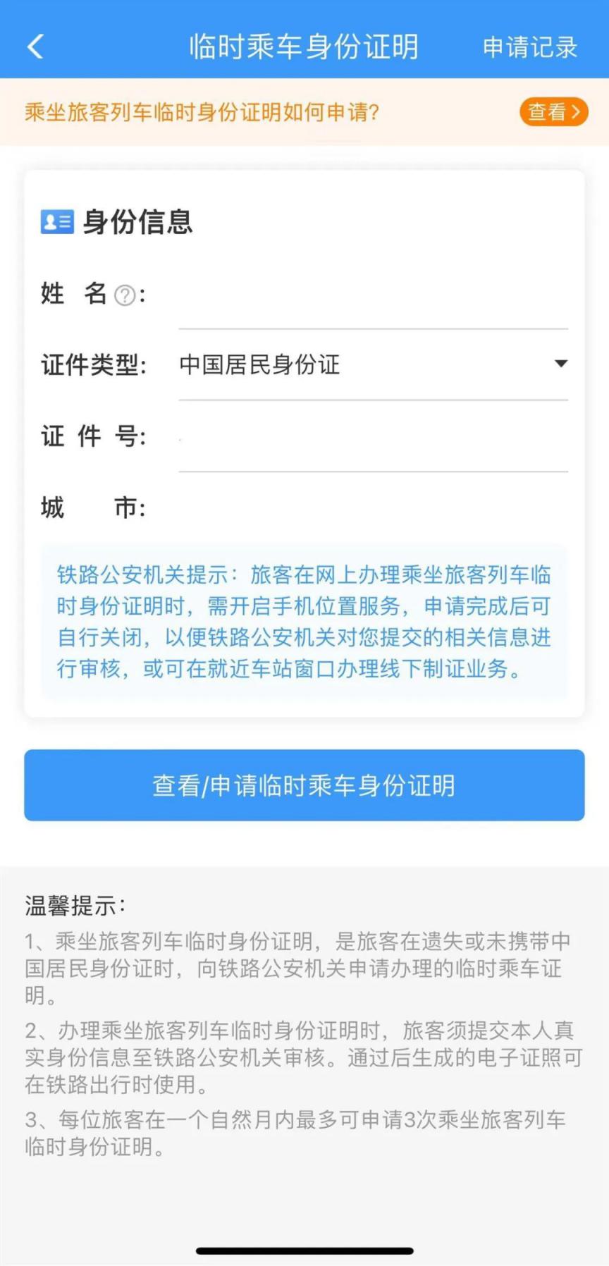 與身份證等效的臨時乘車身份證明