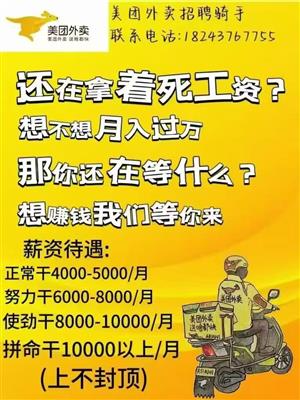 ??微醉?? 更新于 08/03/2025 16:45:56商業(yè)服務(wù)-招工信息-美團(tuán)外賣招聘騎手老帶新3000元 老人1000,新人2000。新人入職獎(jiǎng)勵(lì)2800元,或者可以選車。老騎手返崗1500元。分三個(gè)月發(fā)放。聯(lián)系電話:18243767755