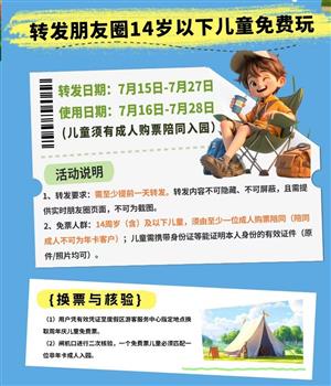 微信用戶635665 更新于 07/21/2025 16:21:56生活服務(wù)-搬家/旅游不限區(qū)域-神鹿峰景區(qū)14歲以下兒童免費(fèi)玩啦!轉(zhuǎn)發(fā)朋友圈立省238元,7月16-28日可用。兒童需有成人陪同入園,成人票正常購(gòu)買即可。[太陽(yáng)]搜索神鹿峰公眾號(hào)[太陽(yáng)]活動(dòng)期間需提前一天轉(zhuǎn)發(fā)朋友圈,截圖無(wú)效哦。